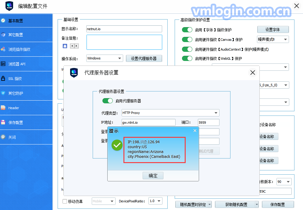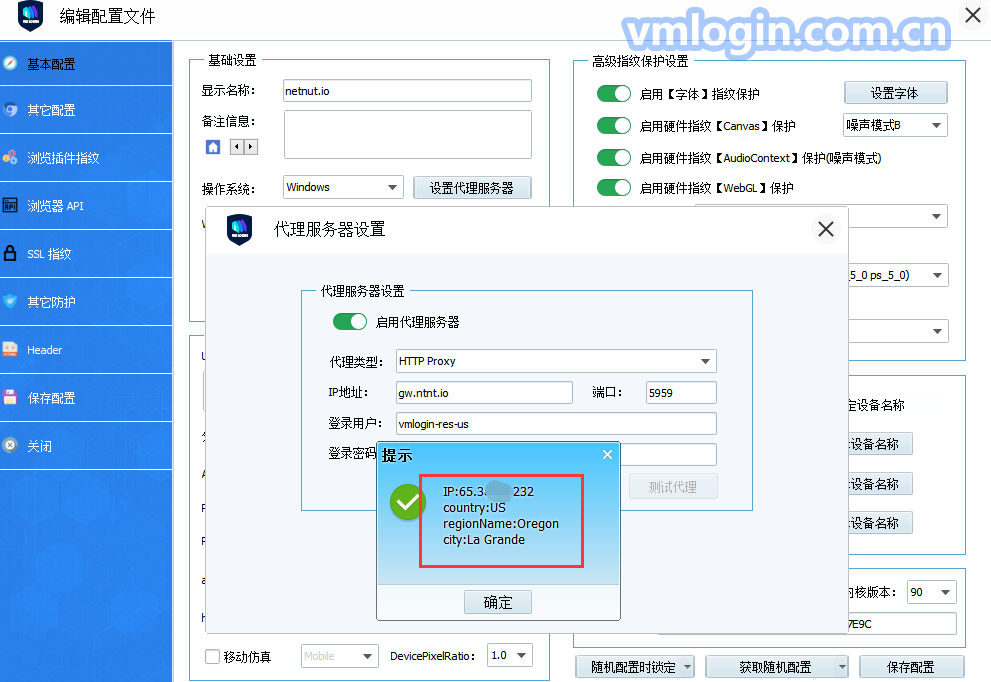 6. 基本配置-->设置代理服务器-->启用代理服务器,如果使用动态住宅IP,请输入以下信息: