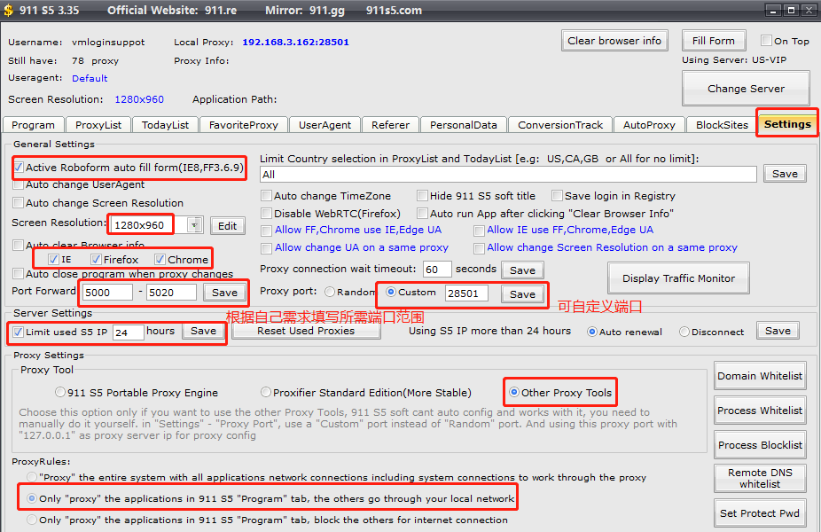 注:本教程为如何在VMLogin多登防关联浏览器中使用911 S5,由于每个用户需求不同,是否适用请自行判断,谢谢!